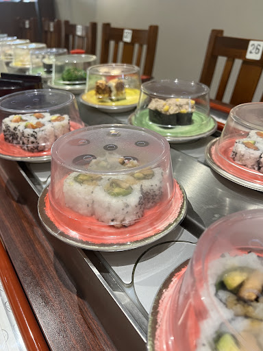 Read moreThe sushi is fresh and tasty, unfortunately the majority of the rolls we got off the train hadn’t had the seaweed paper cut so they were connected and it made for quite a messy eating experience.