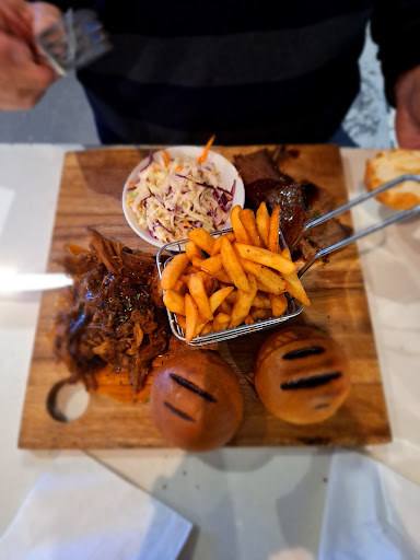 Our third dinner was on the smoker night. We ordered the brisket and pulled pork with chips and onion rings as well as the pork belly, pulled chicken with Mac n cheese and coleslaw. While the meats were all well cooked, the coleslaw was tasteless and watery, and the mac n cheese was a lump of gluggy pasta, practically inedible.