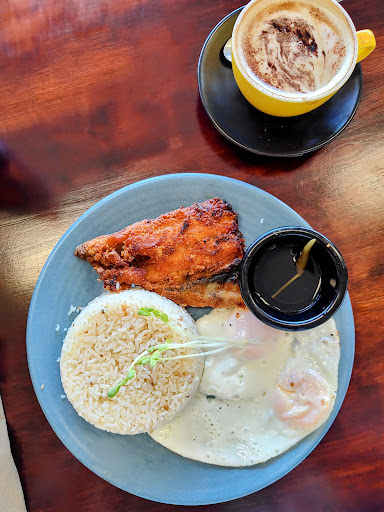 I had a cappuccino, a bangsilog meal (fried milk fish with garlic rice, spicy vinegar, and two eggs), and halo-halo for dessert.