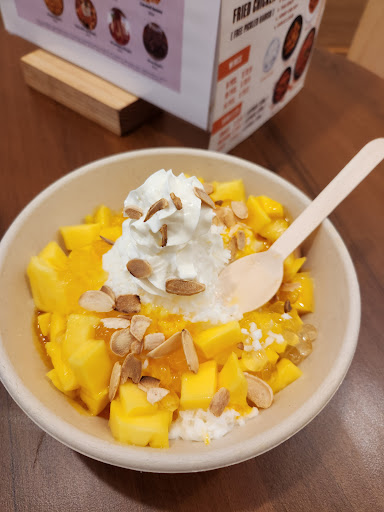 Read moreKorean fried chicken, lacking a bit in sauce volume but very crispy on the outside and juicy on the inside Bingsu is a must - shaved milk ice that melts in your mouth no crunching on ice needed, mangoes were a bit sour. Usually had with a scoop of icecream on top, this shop used whipped cream. I'd pass on the croffle it is just a croissant stuck in a waffle machine. Nice but not...
