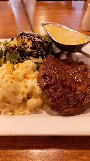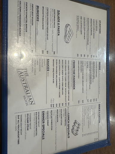 Read moreIn Nowra for work and chose The Aussie based on google score of 4.6. The one and only time google has let me down. I entered right on 6pm, and after just a minute or two the waitress asked if I wanted a table for 1? When I confirmed she handed me a menu and cutlery pack and said sit anywhere you like. No info re ordering, no other words spoken. After sitting there for ten minutes, thinking someone might come and advise, I noticed the QR code and gave that a whirl. Ordering via qr is being phased out in many places so wasn’t sure it’d work, but given I didn’t seem to have a lot of options it was with a try. Ordering was a success and within around 5 mins I received my drink, and about 5 mins after that my meal. I ordered 250g Scotch Fillet medium rare, with chips and seasonal veg, with creamy garlic sauce. No option to as for sauce or anything for the chips. No table water either. The steak was almost the chewiest steak I’ve ever had and I’m not convinced it was even scotch fillet. But I was starving so ate it. Nothing was seasoned at all. Chips were ok but many were soaked with oil. Sorry but this place is far from 4.6 - needs a lot of improvement...
