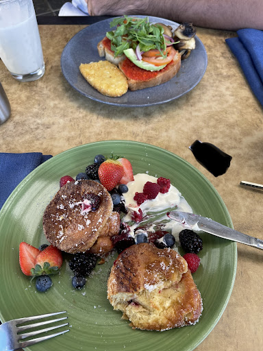Read moreHeard so many positives about this place and was excited to finally able to get out here and enjoy a brunch yesterday with my fiancĂ©. The waiter was nice, though when he brought our cutlery and napkins to the table he literally just threw them down and kept going. My fiancĂ© ordered the Avocado bruschetta, with a side of hash brown and mushrooms. Was nice but underwhelming, $18 for the dish and $4 for one hash brown and $4 for 4 half pieces of mushrooms. He left feeling hungry still, we canât eat beef or pork products due to allergies and there wasnât much of a BIG breakfast option for vegetarians and we apparently couldnât swap the beef/pork products for extra veg options on the big breakfast. I ordered the popovers, they felt stale and heated in a microwave (hot on the outside), cold inside and chewy. I was quite disappointed. The waiter didnât bother to check on us as we attempted to get his attention as he walked around. For $63 for two meals, smoothie and shake, itâs just...