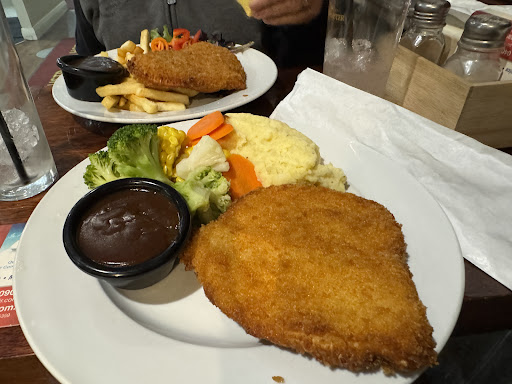 Read moreIt started off wonderful with one of the best lemon lime and bitters we’ve had. The chicken schnitzel was delicious but my mash potato was stone cold and veggies just warm and cold gravy. I asked to just make me some hot chips but the waitress attempted to heat the veggies up again in microwave, still only just warm. I was a little embarrassed to come back again and said just hot chips. The other meal was schnitzel chips and salad which was fine although it had cold gravy. Pub was good...