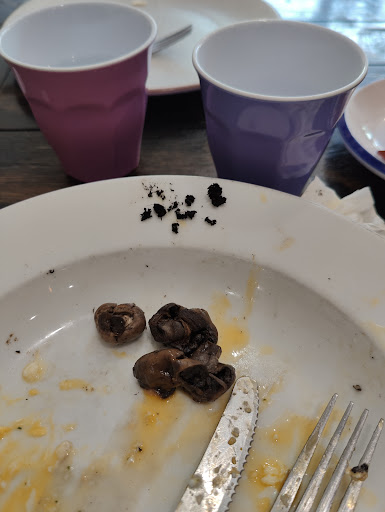 We visited on Sunday morning for coffee and food. Everything was fine until I found a big piece of dirt in my mouth while eating Eggs Benedict with mushrooms. There was also another large chunk of dirt on the plate. This was serious because eating dirt from mushrooms can cause health issues, especially if they aren’t cleaned properly.