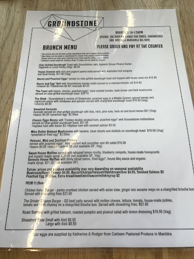 Read moreFood done right. Each element on my plate was considered, cooked properly and compliments the other ingredients. Eggs perfectly poached and served with white and black sesame seeds. Extra texture, beautiful presentation. I would use nigella seed (as I do at home) but love that seeds were used. Its those extra details that elevate the dish. Tomatoes cooked properly and herbed. Im constantly frustrated being served undercooked tomatoes with no flavour. Nice to finally find a place that takes the time to cook them properly. The Tomatoes paired perfectly with the spicy chorizo (and also the haloumi that i stole from nieces plate). Flavourful mushroom. Plentiful bacon and sourdough. I didn't even need to season this dish. "The Feast" was perfect and will get me through until tomorrow. Great coffee, in a mug big enough to swim in. If you want a meal that's considered and a cut above, Groundstone is the place for you. Ill be back when I visit...