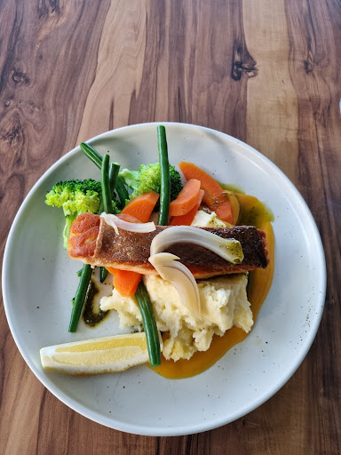 Read moreNot only was my salmon steak a work of art, but it was extremely tasty to boot!! Lovely friendly service - didn't get in the door before I was greeted warmly! I needed a little more time to make up my mind, but i knew what i wanted before i came in!! The menu is varied and inviting, I was disappointed by the last couple of bad reviews in Google Maps, which really do not reflect the service that I got. I really think you need to give people a second chance and sort your issue out at the restaurant before you put a bad review up because someone like me from out of town looking for a healthy fish dinner might not have come because of your review. I'll be back and encourage others to do the same. Pilot Gris was nice too and it was quite pleasant sitting outside...