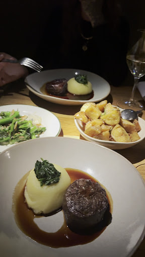 For mains, we both chose the beef fillet with potato puree, spinach, and jus—one medium-rare, the other medium-well—along with charred broccolini and duck fat potatoes as sides. The fillets were perfectly cooked, the puree was silky smooth, and the jus was rich and flavorful. The duck fat potatoes were crisp and well-seasoned, while the broccolini, though delicious, might have been better left less chopped up. The portion sizes were generous, and the quality rivaled other high-end steakhouses in Perth.