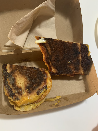 My partner ordered the Ru Paul burger which was supposed to have 3 ingredients (wow not a lot but if the ingredients or can make the burger). The 3 haloumi cheese pieces were like 4mm in thickness with the regular 2 x 4cm dimension. The burger bun had an interesting beetroot taste but was flat and saggy, definitely not fresh. The rocket was minimal and wilted but I assume that happened in the sandwich press. Sauce was interesting.