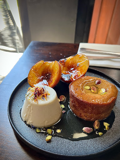 Persian Love Cake - If sugar is love, this dish is swelling with lots of love with a hint of middle eastern flavors. Comes with a caramelized peach with a sweet crunch that is not overpowering. The almond cake is extremely sweet, spongy and soft, and the panna cotta is soft and fluffy. Nothing special if each of them is eaten by itself, but when eaten in the same mouthful, it transforms as the panna cotta balances off the sweetness of the almond cake, and the peach provides a solid base for the mouthful. Recommend for sweet tooths.