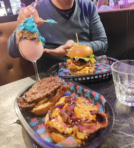 Read moreWent Sunday lunch time first weekend open It was busy but turned through customers quickly. They were telling some customers there was a slight wait but upon going inside looked like there was still plenty of available tables?! It’s a lovely location - overlooking the river We were seated outside in the front part, although a cool day, it was nice as there are overhead heaters. It is table service, so a staff member will come and take your orders. Quick service for food - again for being quite busy we had our food within half an hour. Drinks arrived first: Bubblegum sour - told is Their most popular at the moment. Was nice, but not really a bubblegum taste, but a nice sours taste. Highlight was the warm toasted marshmallow. Loaded shakes: had to pick different flavors as they were already out of Biscoff (less than a week trading!) Shakes were nice though. Thick. Would be nice if you also got a spoon. Sides arrived next (around 15 mins) Loaded gems were nice with chorizo and ‘cheese curds’ (pretty sure it was just halloumi?) Loaded fries were also nice Burgers arrived (around 25 mins) Triple cheese and onion - was very nice. Very basic concept but well done. Buns were a bit greasy upon arrival Kevin bacon - was nice too. A big mouthful! Menu states diced onion and caramelised onion, but only got diced raw onion, no caramalised onion at all. Which we’re not overly fans of raw onion in burgers. Only criticism Would happily come back, menu looks very nice, and plenty of selections, something for everyone to try! Pop-korn chicken looked nice! Was a nice vibe, atmosphere and venue. Staff were friendly, and helpful. There is a surcharge for Sundays and public holidays, which we incurred. While they can ‘split’ the bill for payment. It’s only in half or thirds etc. they do not do itemized splitting of the bills. Located just off Barrack square (down the access road) at the bottom of the Double Tree Hilton Front steps to main entrance but is also wheel chair accessible with a side ramp entrance too. Toilets to the rear of...