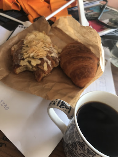 I got to the counter, to the left of me fresh bread sandwiched - all tempting , and in front a ray of croissants , scrolls , rolls etc....I selected the croissant and Almondine. when I went back to work poured myself a cup of instant black ripped open the brown packed, I knew I was in for a treat .