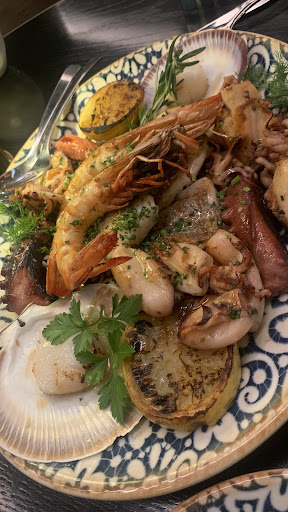 The oysters and squid were sandy and unpleasant. The pasta tasted good but was expensive at $38 for a small portion. The food was served slowly, and the young Italian staff were rude in both speech and manners. Despite paying over $100 per person for the meal, the service was below average. After finishing the meal, we tried to get the bill by putting the napkin on the table, but the staff did not pay attention to us. Instead, they focused on a seemingly wealthy man's table, ignoring us for 15 minutes until we finally had to call a young male staff member, who rudely asked, 'What?' in a loud voice when we approached him. The loud music made communication difficult, as he handed us menus even though we were clearly done eating. We are so confused and tried to tell him that we want the bills but ofc he left to chat with another costumer.