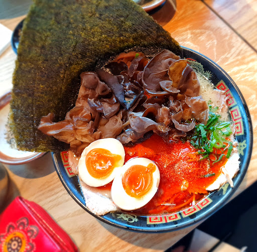 Came again at 12 noon for Saturday. lunch. Same layout and decoration. Service: No queue. Server put down order slips and pens once you were seated. Then, we needed to hand out the order slips and paid at the cashier. There are all condiments, hard-boiled eggs, sesame in mortars, utensils, and serveitte are already prepared on each table. Chilled tap water will be provided upon request, or get it at the cabinet at the back (I saw that the waitress instructed other customers where to get water, but no sign of self-service). Extra hard-boiled eggs were there, too. --- 6.9/10 Ramen: simple menu with 3 basic flavors of soup. Options for taste of soup, flavored oil, noodles texture, and soup temperature. Free to add spicy bean sprouts. -Red Spicy Ramen, $19.5: served hot with all normal serving preferences (authentic Japanese taste). One big chashu slice was tender. Good portion of black fugus (into pieces) and spring onion. Noodles texture was good. Everything is still good. --- 7.5/10 Tonkotsu Ramen Special (all toppings), $24.5: larger portion of pork Chashu. 1 big nori (seaweed) and 1 whole flavored egg (half-cut) with a mild soft yolk (not cooked to perfection, but close to). --- 7.4/10 3/2022 Venue: Small shop, so packed, ~20 seats brench top or small tables. Decorated like old Ramen shops in Japan with a lot of Japanese posters on the walls. Clean & tidy. Ourdoors dining is available--- 6.7/10 Service: no Japanese style greetings. A bottle of chilled tap water will be provided upon request. All essential utensils, serviette, and seasonings are available on the table. Ramen served fast. --- 6.9/10 Ramen: simple photo menu without detail description. There are 3 basic types of ramen soup with various serving preferences and selections of toppings (add more or remove). Easy to click on the order form. Normal presentation. A bit pricey for the portions of ingredients, but there are free hard-boiled eggs (1 egg was broken in the basket) and bean sprouts. Ramen texture was good as ordered (normal). A large piece of Black fugus wasn't shreded. Pork Chashyu was thin and not very fatty, so one chashu was slightly chewy. Taste of (white) soup was rich and nomal. Spicy soup wasn't spicy enough for my liking. Free bean sprout was chilled but crunchy. There are not many spring onions --- 7.5/10 Second time to visit here. Not sitting at the bar table this time. Now, only got 2 free hardboiled eggs in the basket on the table (for 2 people). Those were more eggs one year ago. I wonder if I can ask 1 more egg. One chef cooks Ramen, so wait longer, but still fast. Tried Black Spicy Ramen this time. It's more salty that I couldn't finish the soup. Pork Chashu was ok. I preferred the Red Spicy soup or...