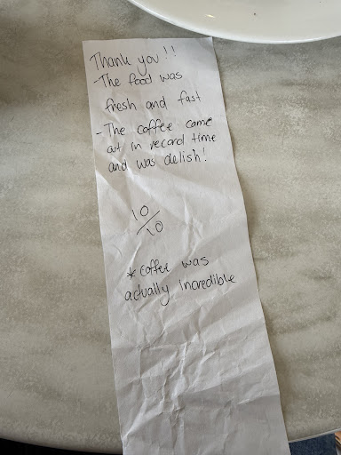 Great service over the counter but inconsistent when delivering food and drinks.