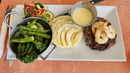 Our visit included a grilled lobster topped with cheese and herbs, served alongside golden fries and a crisp garden salad. The Surf ânâ Turf featured juicy prawns and perfectly grilled steak, accented by fan-piped mashed potatoes and fresh greens like broccolini and asparagusâall plated with finesse.