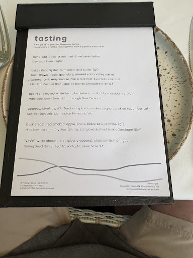 I started with the hash brown. Yes, a hash brownâbut this was no greasy breakfast relic. This was a slab of comfort and indulgence topped with nduja, guanciale, and smoked Yarra Valley caviar. Let me tell you, itâs not every day you eat a hash brown thatâs been to finishing school. It was crisp and smoky, and somehow managed to be both utterly familiar and yet something new, a strange paradox on a plate. It was as if someone took your childhood and gave it a degree in Fine Arts.