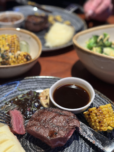 We passed by this Restaurant on Tuesday 21 July for dinner and at first glance we weren't impressed by the appearance of the venue as it looked like a pub, but then I noticed the dry age steaks displayed in the fridge in the front and it really convinced me to give it a shot. To sum up the whole experience to me it was just an over priced pub trying pose as a higher end steak restaurant. The waiter was super nice, we made a booking for 30 minutes later they called us on our mobile when the table was ready. The waiter was very helpful and she seems to be knowledgeable about the wine pairings. She made great recommendations and we even got to try 2 glasses of wine each to determine which one we preferred.