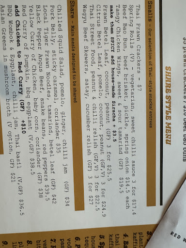 Food was great! A little pricey - we ordered 4 entrees, a main, and two soft drinks, came to $170. Yellow curry was very spicy, this was not specified on the menu. We were actually advised to order 2 entrees and a main to share. When we ordered a little more, staff got funny. We asked for two servings of rice and were told that we should only get one. We insisted on two. When the main came out, they only brought one serving of rice. They mentioned there were two servings on our bill and asked if we definitely wanted the second one. When we said yes, they were hesistant to bring it out and thought we should see how we went with the first bowl. Meanwhile, there were two males sitting next to us, who ordered one bowl of rice, and were offered a second bowl by staff The owner was walking around and making conversation with pretty much every table around us, except for us. We asked her for the bill, she brought it to us, and only asked if we wanted to split it or pay together, and if we wanted a receipt. She did not ask how the food was and there was no conversation of any sort. However, made convo with every other customer Despite the food being yummy, the service kills the experience and makes you not want...