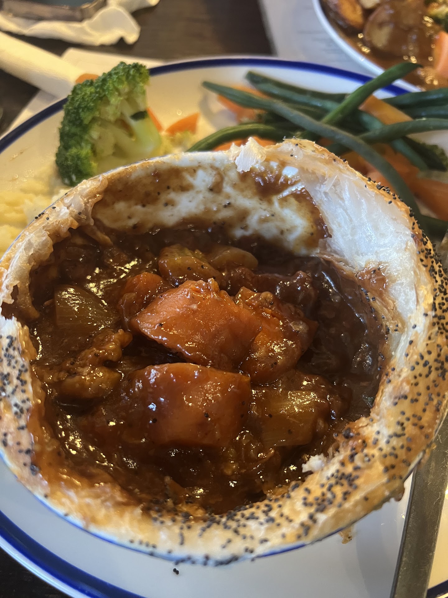 Read moreMixed feelings about this place. Last week I was in Port Douglas with my family (8 people in total including two young kids). We went to Paddys the Friday and Sunday nights. Friday night was great. Food came out pretty quickly and most of us enjoyed our meals (beef Guinness pie was incredible). Because we enjoyed it so much we returned on the Sunday for Father's Day and my Dad's birthday combined. We ordered about 6.15pm and the food started coming out almost an hour later! My brother-in-law enquired at the 45 min mark and was told the food was on its way. The table next to us had ordered about 20 mins after and were receiving their food at the same time. We felt like we had been forgotten and none of the staff seemed to care at all. My Dad was quite upset and asked a staff member about it and her reaction was just to make excuses - "Sundays are busy" (false; there weren't that many people dining at that time and everyone else was drinking) and shrugged her shoulders etc. Didn't even offer an apology. I'm not sure if there was a different chef on that night or what happened. The parmie I had was a bit overdone, my BIL's burger was average, and yeah it just left a sour taste in the mouth when it should have been a great evening. I would hesitate...