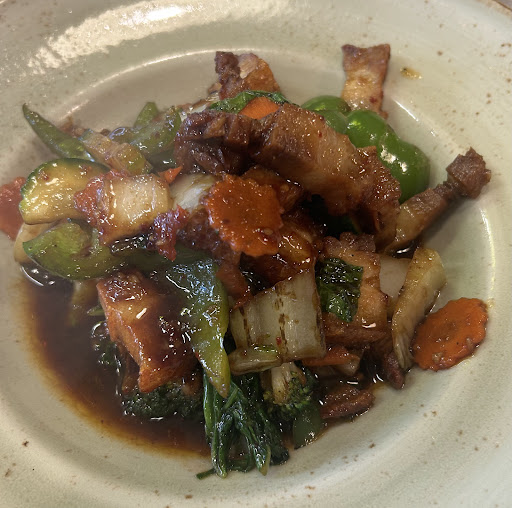 We ordered a medium sized pizza and a pork belly sambal with rice. Also ordered a Moo Brew which we haven’t tried before. The pork belly sambal was generous, well seasoned and the pizza, delicious.