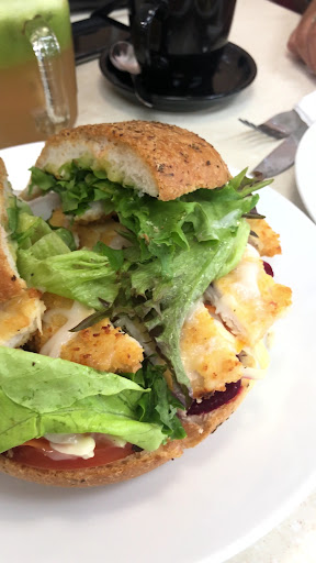 Pleasantly surprised by the extensive menu. We ordered a mega schnitzel focaccia, a clean green juice, a cappuccino and waffles benedict.