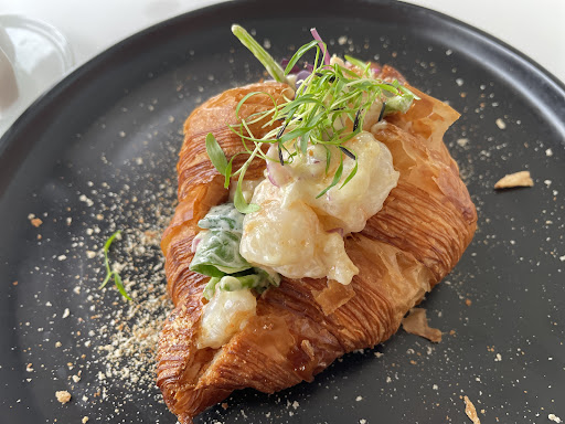 The menu is thoughtful and ambitious in the best way. We tried the housemade white chocolate & banana bread (yes, it's as good as it sounds) and the butter poached prawn croissant, which more than lived up to its local fame. You can tell the kitchen really knows what they’re doing.