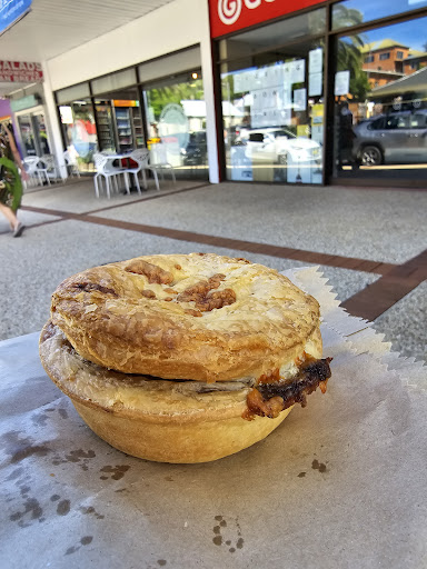 We had the steak pies ( plain). Good looking pies, nice and hot, pastry held its own which was good, full of mixture also good but the after taste is awful. Repeated dreadfully. I’m assuming it was onion flakes and not real onion. I could be wrong but even whilst eating it I could taste something not to our liking. My husband was the same. Did not like that aftertaste at all. Bakery was not a true bakery in regards to selection of cakes. Fresh cream in lamingtons and apple turnovers was older than me… Only custard tarts looked fresh but poor cake display otherwise. Sorry but they...