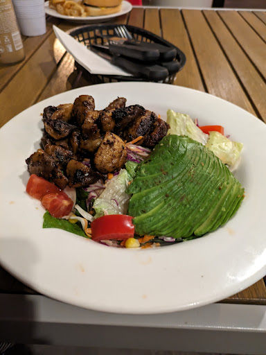 Ah, that steak, lad, it was a symphony of char and tenderness. Juicy enough to raise the tide in your mouth, smoky as a campfire on a starry night. Each bite a chorus of spices, singing a sweet, sweet ballad on my tongue. Paired it with that mac and cheese, creamy as a duchess's dream, rich with cheddar and whispers of garlic. Macaroons for grown-ups, I tell you! And the curly fries, now those were a dance! Twirling like ballerinas in that peppery gravy, a tango of salt and spice that had me stomping my feet (metaphorically speaking, of course, mind you, those booths ain't built for jigs).