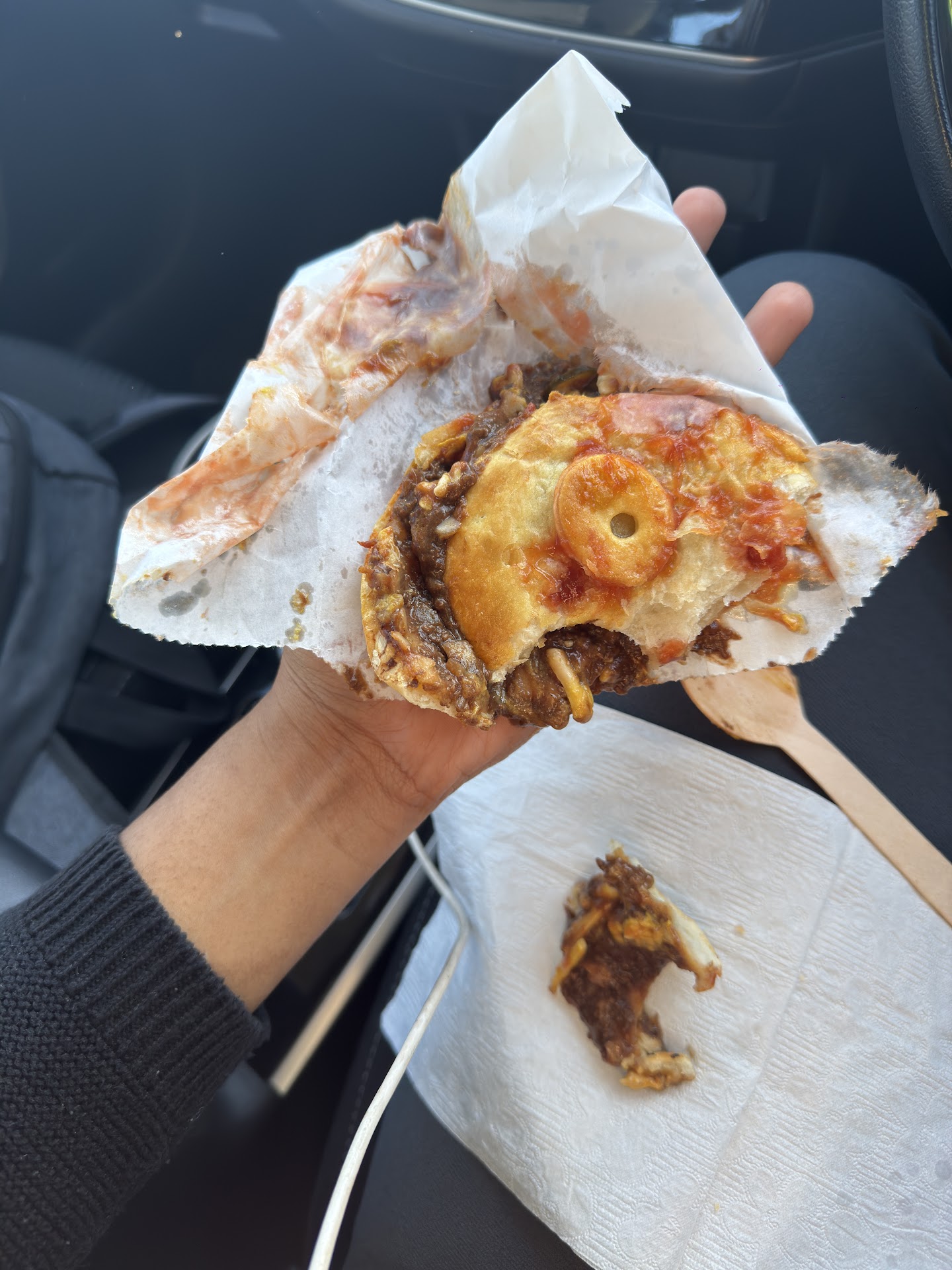Watching others hastily devour sausage rolls and vanilla slices with reckless abandon, I couldn’t help but feel quietly superior, knowing I had chosen the grandly — a pastry that clearly separates the connoisseur from the common commuter.