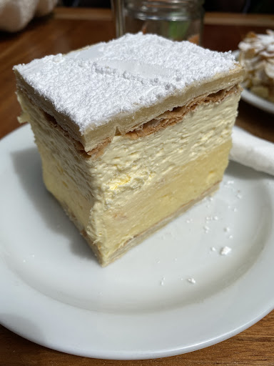 Read moreLined up with other strip shops, high on the main street is the Portarlington bakehouse. Its double fronted feature is a beacon to one with an appetite. It would be the dominant business with a bayview, street side seating, indoor seating and a quirky backyard space with more seating. There is quite a range of baked items, pies, sausage rolls, focaccias etc. After a long walk in the district this punter took on a trad long black and a vanilla slice. All up $8.90. The coffee was good, the service was good. The slice, a generous portion was delivered to my table with a knife and fork. Unusual I thought. I am not a pink icing man, and so it was with a deft hand that I peeled back the sticky layer like carpet from a pub floor. The choppers went in. Custard went out. Oh dear ! No biscuit crunch in this slice. The knife and fork became the fighting tools of choice to clean up this delicatible feast. The custard was good but would have shone between a better vehicle of pastry. Fortunately the mens were close by so that I could clean myself up for the public. ⅖. I would try some other...