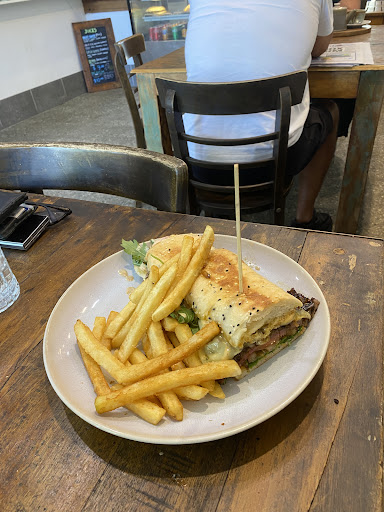 Popped in for lunch and ordered 2 x Roasted Pumpkin Salad w Olive Oil Dressing for myself and daughter .. Service was alright but the Salad .. well! .. it was drowning in olive oil so much I couldn't eat it .. so I asked for another one with less dressing .. the chef was not pleased .. he banged down something in the kitchen and the next salad came with even more dressing .. I soaked up 8 napkins of olive oil before I could attempt to eat some .. and the fries came out cold .. my daughter was in agreement but she managed to eat her's .. the salad would have been really good with the combination of ingredients if not drowning in dressing .. not...