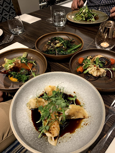 I really don't understand why this place has so many 5 star reviews... Went here for a family birthday dinner and it was embarrassingly disappointing. Firstly, the food came out 80 minutes after ordering. By the time we ate dessert I was pretty much ready to sleep. Many other tables who had ordered after us got their food first, and when we finally did get our food all of our dishes were cold. The portions were tiny and the only dish that gave a "wow" factor was the koji eggplant, nonetheless it was finished in one bite. I can't believe we got 3 pieces of their jerk cauliflower for 15 dollars. The dumplings were yummy but the sauce was overpowering. Wish they had more substantial vegan options that weren't just vegetables (where are the potatoes, rice, tofu, beans, tempeh?) as I was starving even after dessert. The service was strange and it felt like we were being treated lesser than the other diners. Anywho, the only reason I'm not giving them 1 star is because the dessert was amazing. We got their green apple pave which was light and fluffy and warm with a lovely crunchy caramel and vanilla ice cream. Still tiny but very good. Not to mention the day after both my partner and I had upset stomaches and felt bloated which rarely happens to us, so not sure if it was 100% plant based or just cooked with lots of oil. Will not come back ever and do...