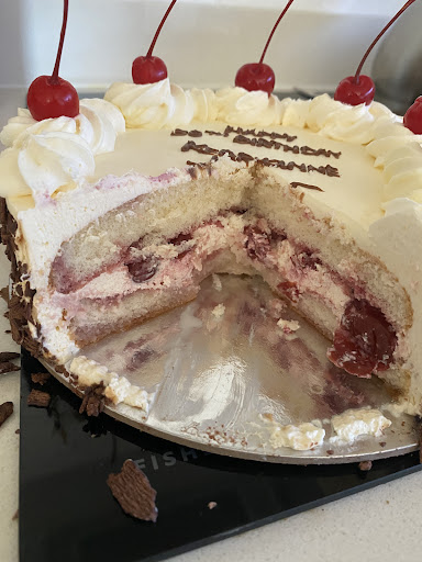 Was very disappointed to get a âblack Forrestâ cake that wasnât black. Personally Iâve never heard of anyone making a Black Forrest vanilla flavoured. There was not one bit of chocolate inside the cake, as you can see from the photos itâs just a vanilla cake with cherries and chocolate flakes on the outside, not a ârich chocolate flavourâ as you quoted. This makes it very sweet, too sweet in fact which is probably why usually itâs supposed to be a chocolate sponge to counteract the sweetness of the cherry syrup. Not to mention the syrup made the sponge very wet so by the next day when we cut into it the sponge was quite soggy. Also Iâve never heard of a bakery completely changing cakes by default just in case someone might have an allergy, usually those with allergies would specify they need it changed?! But also why wouldnât you say this when a customer orders a custom cake? That is so weird. Thatâs a big change to make considering black Forrest literally is a type of chocolate cake. Not impressed. We could not return on the day (April 30) as he ordered it the day before my birthday, I didnât realise I was supposed to cut into it to check it was correct the day before my birthday!! We did this as we didnât have transport the following day (May 1) and therefore was not able to get a replacement cake as we couldnât get to you. This wasnât mentioned to hubby when he ordered it or picked the cake up so thatâs a bit unfair. We ended up eating it as I didnât have any other birthday cake and couldnât pick up another one. A bit sad for a 30th...