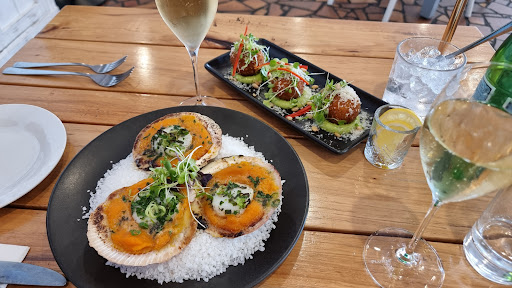 Read moreBooked a seafood platter for two, 24 hours ahead of time as required for an Anniversary Dinner. We were seated at a beautiful table at the rear of the restaurant which suited us nicely. Inside it feels light, bright, open, modern and clean. The seafood was ample, with fresh crab, Moreton Bay Bugs, natural oysters and prawns. The hot seafood was cooked in a light and crispy tempura batter - prawns, calamari, scallops and fish bites. The accompanying salad was very tasty with a zingy dressing. There was of course, a tartare sauce and we loved the cocktail sauce which was spliced with a delicious chimichurri. The fresh fruit was ripe and served its purpose as a refreshing compliment to the seafood. Dessert was very nice, the New York Baked Cheesecake with flavours of vanilla, cinnamon, fresh strawberries and basil. It would be good to see a selection of lighter desserts better suited to summer on the menu, however there is something to suit most people’s tastes. My cocktail was a Saulstarr Martini with vanilla vodka, passionfruit liqueur and fresh passionfruit - yum! The waitstaff were friendly, efficient and worked well together. Although it is one of the more expensive restaurants in the Bay, we are happy to pay for quality produce provided by industry professionals. We would recommend and return...