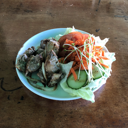 Cool rainforest vibe about the eating area. We shared a house special between several of us. $25 and we had good portions of crocodile, barramundi & kangaroo on chips, local fruits (like dragonfruit) and a garnish. Unless you were starving, it'd be way too much for one person. The meats were pan-fried and...