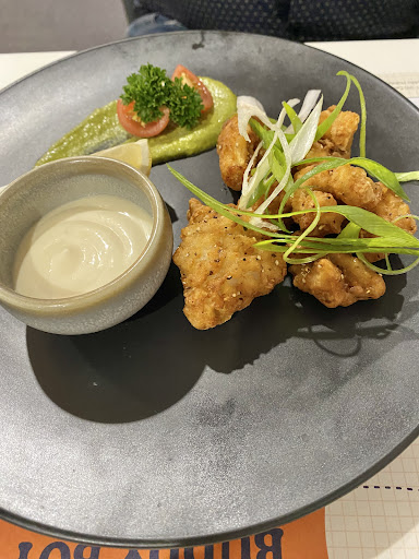 Having looked at the menu before eating here, we had the impression that this restaurant was a bit fancy since there is a limited meal selection and you pay per course rather than per meal, not to mention the price of the food. We went here for our anniversary dinner and suffice to say… thank god we have a good sense of humour. This place gave all the pzaz of a roadside motel bar. The venue is like eating in a converted office space so we sat outside by the road as it was the lesser of two evils. The food is seriously not worth the price. We had a calamari starter which was served in over-cooked chunks, a massaman curry which tasted like any non-distinct East Asian curry and was too sweet, and my partner had pork belly which was undoubtedly reheated from frozen, probably pre-packaged, had mushy crackling and ultimately gave him food poisoning. We had a Riesling which tasted and smelt like vinegar and so, believing that the bottle was perhaps out of date, we tried the Pinot Grigio and found it to be the same. I cannot stress enough how bizarre and disappointing Buddy Boy Kitchen is as a restaurant, nor can I fathom how and why this place has any good reviews. Highly do not recommend. Go the...