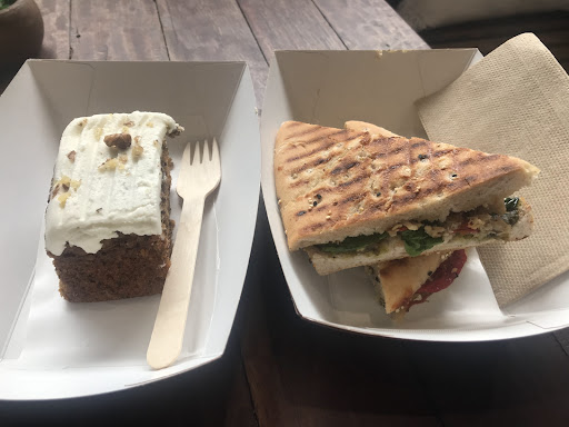 My iced mocha more a milkshake, same for the iced Vanilla Latte, more a milkshake than a coffee based drink. Carrot cake overloaded with sugar making my fillings tremble. Staff talking so loudly amongst themselves it was hard for our group to hear each other. We did not appreciate being given the Old hard stale Banana Bread. Take care serving old food...