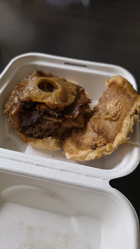 The food in the van that comes to a few industrial sites is absolutely appalling. It has clearly been in there far too long, is always kept below a safe temp and is sometimes inedible, like the $13 burger in the photo below. It has been consistently terrible for a very very...