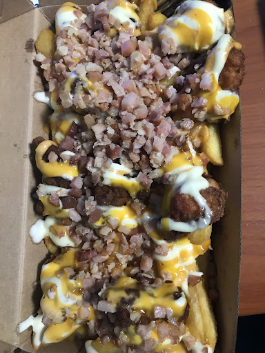The chips are beautifully seasoned and the fried chicken is accompanied with bacon and a selection of sauces including a cheese sauce and tangy mayo, awesome combo. If I could eat this every day I would.