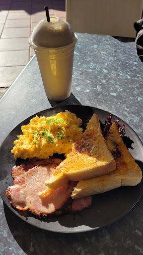 Staff exquisitely courteous, chick schnitz burger monstrous, chips delightful, eggs Benny perfect, and came with 3 eggs done exactly right!! They even delivered a little Christmas chocolate each to our table with a big smile. We shared a choc milkshake ... just as well ... it too was huge and uncharacteristically (for most places) was actually filled above the top of the container and into the domed lid.