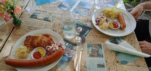 You're greeted by two lovely ladies. We ordered lunch and cake. There's clean public toilets and a covered patio area to eat and relax. Gardens had colourful bougainvillea flowers growing. We enjoyed the knackwurst and sauerkraut meals. The kids liked the sausage and the meatball roll. Lovely fresh bread. It was simple flavours and brought back memories of German holidays.