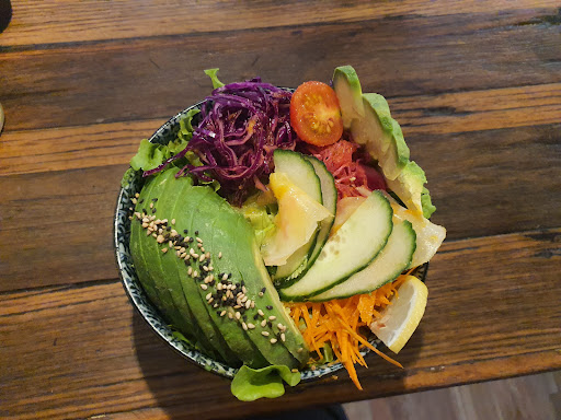I ordered battered tofu side with a deconstructed sushi poke ball and a kombucha from the fridge, my dad saw that they had a lot of chicken offered on the menu so concluded that was a chef speciality and had a chicken burger with a beer. Came out quickly and was DELICIOUS! The avocado was perfectly ripe, ingredients fresh, sushi rice cooked just right with crisp lettuce, and to mention the presentation was just flawless!
