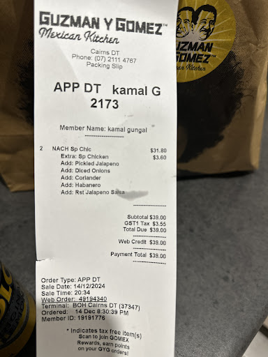 Ā Ā Ā Read moreLoyal customer here. Tasted Guzman across NSW, NT, and WA. This one was probably the worst experiences I have ever had. The person who took our order did not even ask if we wanted to dine in or take away, but they asked the next customers after us. She assumed we wanted to take away but we wanted to dine in. Since we did not want to make a fuss as we can just grab out food and eat at one of their tables later. All this service with no smile, no thank you. Secondly, the salsa station has no cilantro and no forks, so I waited in queue again to request those. The white guy gave me those with the most fed up look ever and did not even communicate, just passed on a fork with the greatest annoyance, as if I asked him to drop me the cilantro to my home and back at his own expense. Mates, if yous do not wish to work at customer service and serve customers with a happy face, then find another job. As someone who did retail for 6 years and management for 1, I would not hire you in the first place or keep you with that spirit.