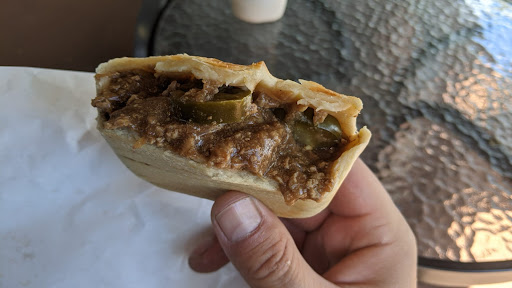 How this place is rated so high is beyond belief. I will say the staff member was welcoming and friendly but the pie and sausage roll were below servo standard. Sausage roll was dry and there was nothing flakey or fresh about it. These Cannot be made in house as they all the same in the window. Pepper steak pie……plenty of pepper in the pie but after my first bite when I saw vegetables and a white sauce I almost fell off my chair. The meat was also silverside and not steak. I’m still scratching my head as I drive...