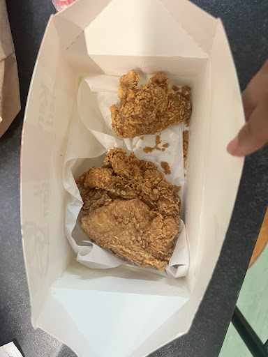 Read moreThe most disgusting and KFC I've eaten! Went there yesterday, Sunday the 25th of August around 4:30pm after working a hard day on a Sunday myself, I was hungry and looking forward to a Chicken stacker burger which I ordered, with a three piece feed, which I asked politely for with no wings. What I got was the three piece feed box with the burger stuffed inside that, no paper bag with serviettes or spoon for the teaspoon of potato apparently which was meant to be potato and gravy, I pulled the burger out of the three piece feed box it was shoved in,unwrapped it, it was small bits of chicken mush. I couldn't hold it, it fell to mushy bits on the first bite, my three piece feed was one shriveled up dry chicken wing, one very dry chicken breast, and one eatable bit of chicken. It cost me 30 odd bucks! That's an hour of me digging a hole with a shovel. I work in tourism and will never recommend this KFC....