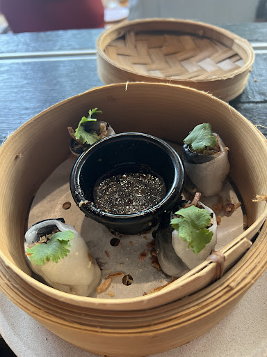 Read moreI really want to focus on the truffle mushroom dumplings (first picture) because they were sublime. You definitely do not want to miss giving these flavour bombs a go (unless you dislike mushrooms). They are sublime and a stand-out favourite of the 4 dishes we ordered. We started with the kingfish ceviche which we ate before I could take a photo. Kingfish is such a gorgeous fish on its own and the complimentary flavours of coconut spice made this starter delicious and fun. Then we went on to the mushroom dumplings, followed by fish and eggplant bao buns. These were good but I wouldnât order them again - they didnât stand out to me. Then we finished with duck pancakes. Very good. A note to the restaurant - servers really do need to be trained not to take plates away before diners have finished eating. I went to the bathroom and my daughter was in the process of making her last duck pancake when the server came over and picked up the plate, which still had a piece of duck and condiments remaining. Then, after she had already picked up the plate, she asked my daughter if she wanted the last piece of duck. I noticed this a few times myself - a little overly eager to remove glasses and plates before we were completely done. I admire the efficiency but this is a bit of a put-off. Easily remedied though. Overall, a thoroughly delightful experience and we sat indoors at the high alfresco style table so we could look out at the street. For us, it was the best seat in the house!...