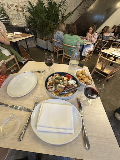 On an extremely cold winter midweek night, we decided to give this relatively new restaurant a try at the suggestion of some local friends. We were a party of four, three carnivores and a vegetarian. Pushing open the extremely large and heavy timber entry door revealed an inviting industrial-chic dĂ©cor. The wait-staff were friendly and very attentive and promptly showed us to our seats â we were early diners and there were only two other patrons when we arrived, although the restaurant soon filled up. The menu is designed to be share-plates with plenty of interesting selections. Gluten free pita bread is ubiquitous and there are lots of vegetarian options. We began with a couple of selections from the starters: a small bowl of Smoked Olives and Cherry Tomato Pickle, and the Melitzanosalata (Charcoal Smoked Eggplant & Capsicum Dip). At the suggestion of the staff, we also ordered extra pita. The olives were nice and smoky and the eggplant dip was excellent. The pita bread was fresh and soft. A serve of Cheese Saganaki (Pan Fried Greek Kefolagraviera Cheese, Lemon Thyme Honey) materialised and, while none of us could remember ordering it, was superb. It was served as a single piece in a sizzling hot pan, which made it awkward to divide amongst us, but it was quickly devoured and was the stand-out dish for the vegetarian. For the mains, we had ordered Tiger Prawns (Local Prawns with Ladolemono Sauce), Lamb Ribs (Twice cooked lamb ribs finished off on charcoal, Zucchini Smash, Green Greek Salsa) and Charcoal Grilled Vegetable Skewers (with Tzatziki, Sumac Onions, Charred Banana Pepper, Soft Herbs, Pita). The three large prawns were perfectly cooked and the lamb ribs moist and tender. The accompanying sauces and salsa were also great. The carnivores declared the lamb to be their favourite of the night. A serve of Lemon Patatas (Thrice cooked Greek Lemon Potatoes) that we had ordered arrived finally arrived â heavily salted thick wedges with a tart lemon finish. The prawns and lamb had almost been finished off, but the vegetable skewers had not yet arrived and a query with the waitstaff saw a request sent to the kitchen for a status. When they eventually were served, it wasnât worth the wait. No skewers, just a small handful of limp vegetables served up on a pita bread â the onions were basically raw. No taste of charcoal at all. There was one lone tiny mushroom, but it wasnât clear if its presence was by accident or design. All in all, a culinary embarrassment that should never have left the kitchen. There is an interesting wine, beer and cocktail list, including non-alcoholic cocktails. One of the beers we tried to order was unavailable (a pet peeve of mine to be told something is unavailable only after it has been ordered). The food prices are fairly steep for the size of the serves, so itâs debatable whether the restaurant offers value for money. A high surcharge for using a standard credit card also stings. Itâs great to see a venue of this type in Toowoomba and hopefully it will settle...