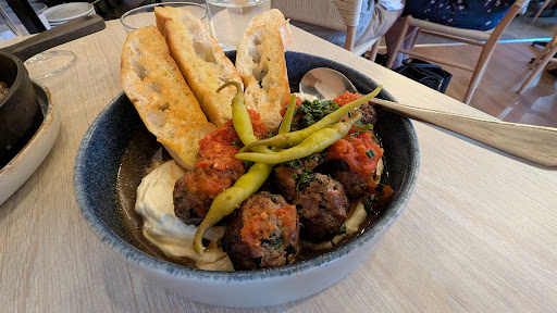 Next was a mushroom meze (not on the sample menu) served with bread and the combination of herbs worked incredibly well (mint, dill and continental parsley from the appearance). A meatball meze arrived next - I loved the presentation with the peppers on top.