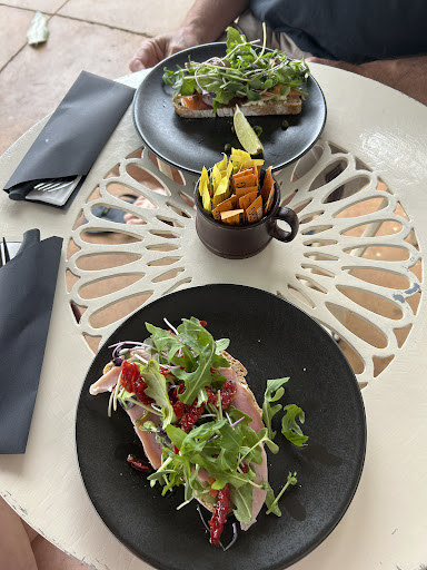 I had the gluten free quiche with Moniās special salad. I donāt need GF but the wholesome, delicate quiche had me gobbling it up fast alongside the local fresh greens and colours of the salad - a boon of flavours and Malanda goodness. š My sister had the tomato pesto and chicken open sandwich on Moniās home baked sir dough and that was just as delicious (sisters are very kind to share!:)). Boy! Can Moni cook! And then there was the homemade lemonade - a real treat indeed. The service was lovely with the team all working so well together.