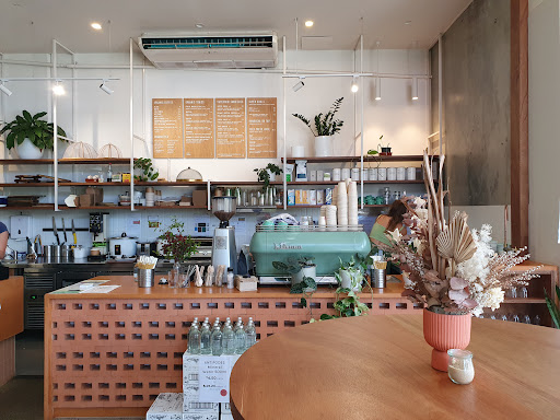 Really beautiful shop and has great potential but the staff in the Cafe come across as unwelcoming and rude. No smiles or welcoming demeanour at all just staring with blank faces or looking down. The salads are tastless and the chicken you can add isn't freshly roasted chicken. It tasted, smelt and looked like that highly processed ingham chicken junk. Almost like mock chicken. It was really disappointing and discusting. My kids had the kids smoothies. Mango and Berry. They were surprisingly horrible. They didn't want to drink them so I tasted them and I understood why. They are meant to be mango ice cream and milk i was told, but they tasted more like mango/berry sorbet ice and milk. My son loves mango smoothies but he said this tastes really bad. There was absolutely no creamy or mango taste to it as with the berry one too. Just watery artificial tasting sludge!!. If it was my place I'd be nipping the staff attitudes in the bud and getting the smoothies right by actually tasting them and then reviewing how the staff are making them. Although it could be just all about profit and not great smoothies? Staff passive aggression is not good for business. Some of them clearly shouldn't be in customer service jobs at all. Overall very disappointing. On a positive note the crossiants were perfect but that's...